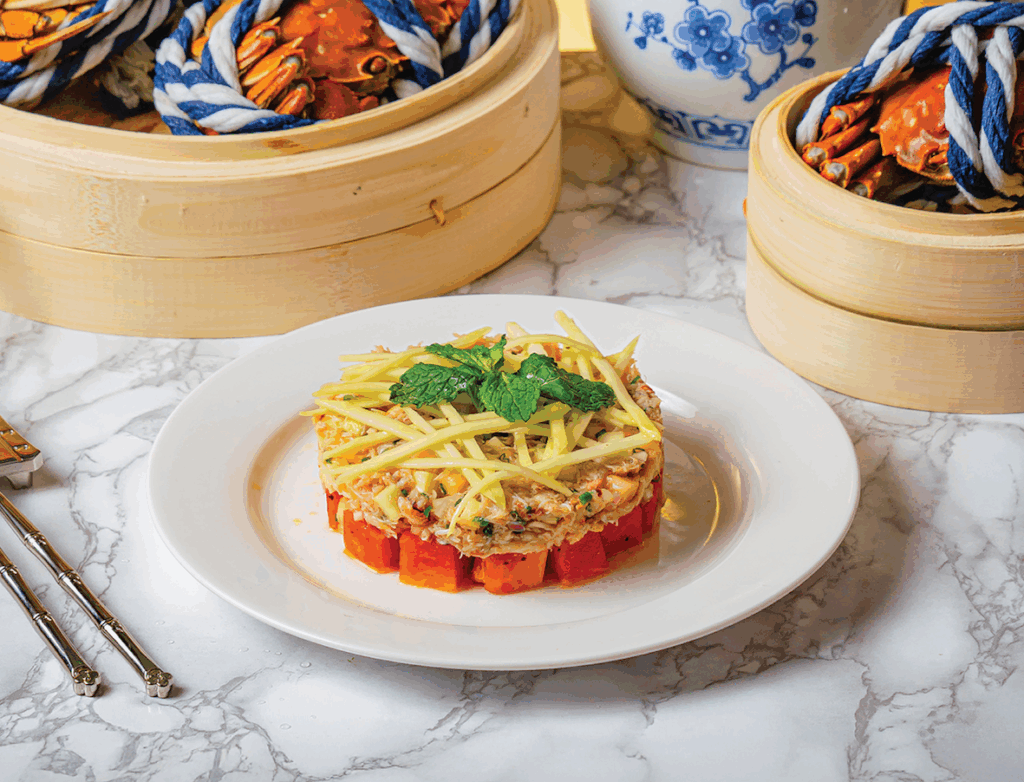 Succulent crab meat paired with juicy mango, papaya, and hami melon, finished with a zesty white balsamic dressing. Available à la carte or as a set menu upgrade.